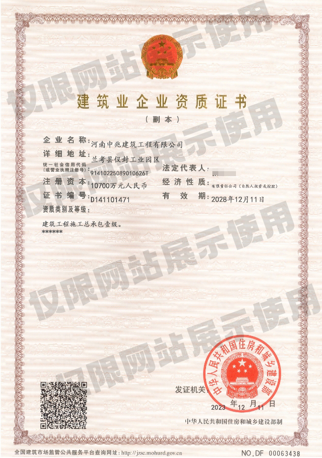 • 河南中兆建筑工程有限公司成立于2013年,公司注冊資本10700萬元,凈資產總額近1.9億元。公司目前具有“建筑工程、市政公用工程、鋼結構工程、建筑機電安裝工程、建筑裝修裝飾工程、地基與基礎工程、消防設施工程、壓力管道”等17個資質?,F有從業人員2150人,具有中高級各類專業技術職稱管理人員達120人,壹級、貳級建造師約90余人;主要施工設備300多臺(套)。通過了ISO9001質量管理體系認證、職業健康安全管理體系認證、環境管理體系認證,并多次獲得省級“AAA”信用企業、“重合同守信用”、“先進建筑企業...